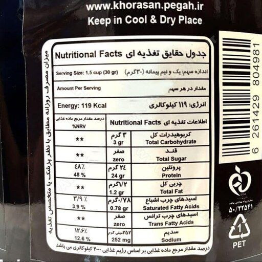 پروتئین وی 100% پگاه خراسان 10 کیلویی پروتئین وی پگاه خراسان که در وزن 10 کیلوگرم تولید شده است، با حجم بیشتر و قیمت مناسبتر برای مصرف ورزشکاران حرفهای که تشنه دریافت انواع مکملهای پروتئین وی زود جذب هستند بسیار توصیه می شود. متاسفانه در سالهای اخیر به علت افزایش قیمت دلار و فراوان شدن مکمل های تقلبی ، نظر ورزشکاران نسبت به مکمل های ایرانی از جمله پگاه خراسان جلب شده است. در این محصول کنسانتره پروتئین وی (wpc) از آب پنیر آنزیمی یا آب پنیر سنتی استخراخ و تولید می شود. به همین جهت خلوص بالا و عدم استفاده از هیچ افزودنی اضافی، به کیفیت این محصول پگاه خراسان افزوده است. پگاه محصول پروتئین وی 100 درصد را در وزن 1 کیلوگرمی نیز تولید کرده که به آسانی حمل میشود. همچنین برای تست نیز میتواند استفاده شود. پروتئین صد درصد وی به این معنی است که در ساخت پروتئین وی ، از پروتئین کازئین استفاده نشده است و همه ی حجم پروتئین استفاده شده از نوع وی است. پروتئین کازئین نوعی دیگری از پروتئین است که در شیر یافت می شود. برای تولید پروتئین 100 درصد وی هیچ مقداری از پروتئین کازئین در تولید محصول استفاده نمی شود. مزایای مصرف پروتئین وی 100 درصد 10 کیلویی پگاه پروتئین وی پگاه در هر دوره خشک کردن (کات) و در دوره حجم (بالک) مصرف می شود. به دلیل اینکه پروتئین وی باعث عضله سازی سریع می شود در نتیجه باعث افزایش حجم عضلات می شود از این رو در هر دو دوره قابل مصرف است. مزایای پروتئین وی 100 درصد پگاه در وزن بالا (10 کیلویی) به شرح زیر است: افزایش عضله سازی کاهش اشتها کمک به چربی سوزی در دوره خشک کمک به افزایش حجم در دوره افزایش حجم افزایش سوخت و ساز بدن افزایش راندمان و انرژی به علاوه به دلیل حجم زیاد این محصول برای ورزشکاران حرفهای که نیاز به مصرف آن در دورههای طولانی مدت دارند بسیار مقرون به صرفه بوده و توصیه میشود. برای ورزشکارانی که قصد مصرف مقدار بیشتری پروتئین در دوره های ورزشی خود دارند پروتئین وی 10 کیلویی پگاه بسیار مرقون به صرفه تر است. از طرفی اگر طعم برای شما اهمیت کمتری از درصد پروتئین داشته باشد ، خلوص پروتئین پگاه به علت اینکه هیچ ماده افزودنی در آن استفاده نشده اندکی بالاتر است و درصد پروتئین ذکر شده واقعی تر است.حلالیت و جذب شوندگی وی پگاه مطلوب و قابل رضایت است نحوه مصرف مقدار 30 تا 40 گرم از پروتئین وی پگاه را با 250 میلی لیتر آب داخل شیکر اضافه کنید و به خوبی شیکر را تکان دهید تا املاح کامل حل شوند. برای طعم دهی میتوانید وانیل ، کاکائو یا انواع طعم دهنده های مختلف را اضافه نمایید. زمان مصرف بهترین زمان مصرف پروتئین وی پگاه 20 دقیقه قبل از تمرین و بلافاصه بعد از تمرین است.