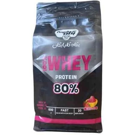 مکمل پروتئین وی ایزوله و کنسانتره پگاه 650 گرم ۸۰%(با طعم توت فرنگی)